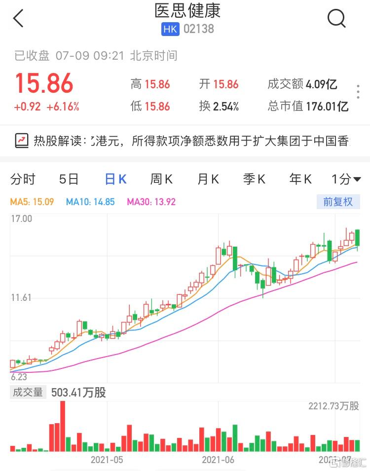 港股異動 | 醫思健康(2138.HK)高開6.16% 擬先舊後新配股淨籌2.488億港元