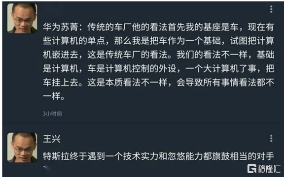 也正是看出了這一點,王興纔會就此評論:"特斯拉終於遇到了一個技術實力和忽悠能力都旗鼓相當的對手了。“