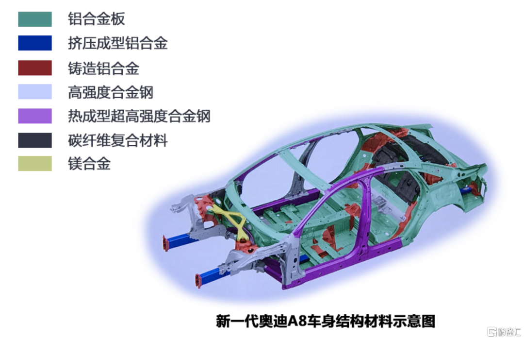 此外,傳統車企的製造工藝積累,在新時代依舊是一柄利器。比如新能源車爲了增加續航,使用全鋁車身減重是一種常見的手段,但奧迪在全鋁車身的材料和焊接技術上積累已久,2017年的奧迪A8,在全鋁車身上採用了14種焊接工藝,其中遠程激光焊接這一項新技術降低了生產時出現裂紋的風險,也節省了95%的批量生產成本。
