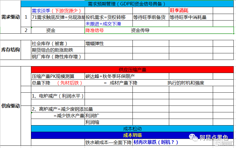 至於後面政策是否轉向調整,不確定;淡季價格快速上漲是否再次預期管理,不確定;總之產業現實有預期利多題材,且產業預期利多短期無法證僞;目前的限產政策會帶來成本鬆動,卻不是成本坍塌的打壓礦石,所以行情跟着現實的時間窗口,關注政策導向,走一步看一步!中旬不跌,下旬行情就很難說!