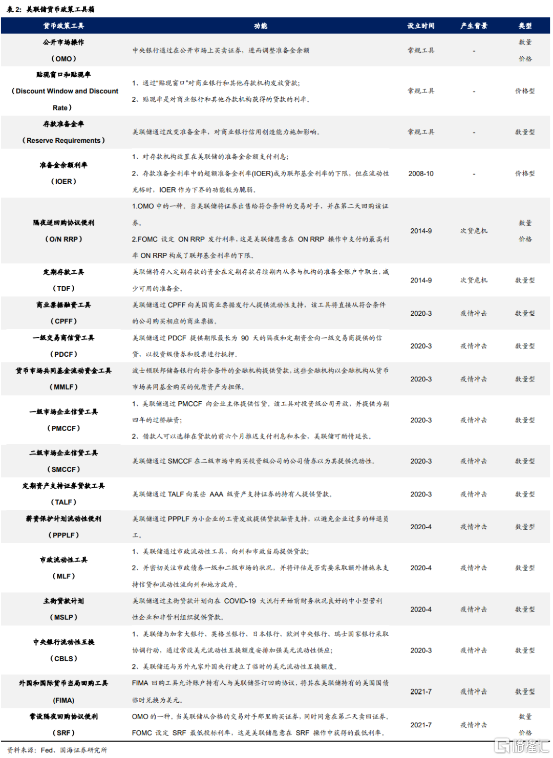 美聯儲擁有衆多貨幣政策工具來調節利率或是扶持實體經濟。次貸危機後,美聯儲先後創設了10餘種新型貨幣政策工具,來達到其對經濟運行“微調”的目的。2020年疫情爆發後,美聯儲也同樣推出了衆多貨幣政策,來穩定市場,降低經濟運行波動。