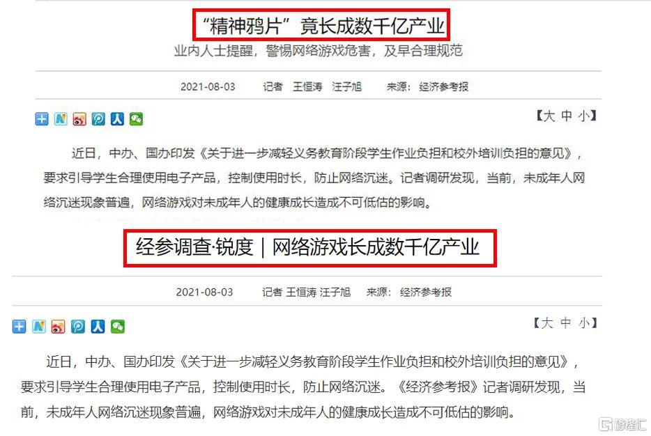 一大早,新華社旗下《經濟參考報》發佈《“精神鴉片”竟長成數千億產業》一文,點名《王者榮耀》,還將網絡遊戲比作新型“毒品”“精神鴉片”。