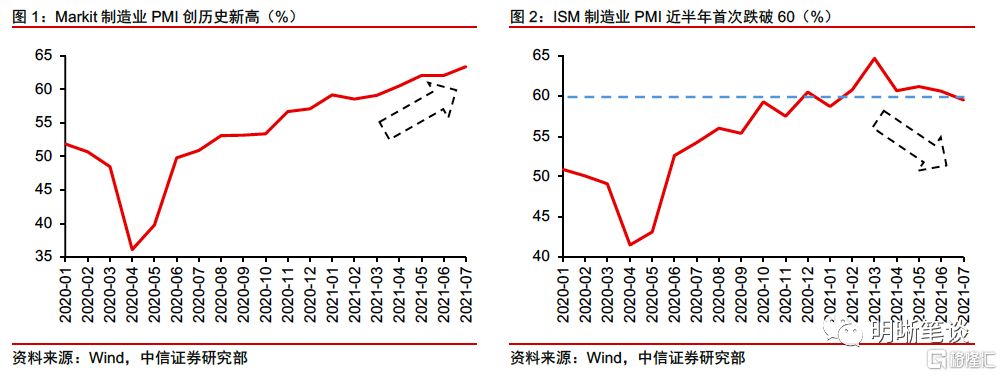 美國7月兩大製造業PMI指數出現分化,63.4的Markit製造業PMI指數創歷史新高,而59.5的ISM製造業PMI指數則低於預期。兩大指數的分化源於指數編制差異,包括調查對象數量、分項指數權重、調查對象類型以及調查限制不同。總體而言,IHS Markit製造業PMI指數在反映經濟真實狀況上可能略勝一籌。從近期PMI、GDP數據以及未來走勢看,美國經濟復甦仍然強勢,未來增長動能強勁,當前美債利率跌破1.2%或存在定價錯誤風險。但仍需警惕Delta毒株引發疫情反彈可能阻礙經濟復甦進程的風險。