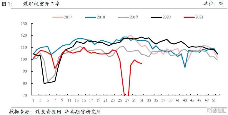 臨近七一,爲保證大慶活動期間生產安全,多地煤礦進行了短期的停產,然而大慶結束後的復產工作進展相對緩慢,更加劇了當前煤炭供需緊張的局面。縱觀上半年,自保供結束後,煤礦權重開工率便呈現下降趨勢,長期處於季節性低位,尤其七一停產期間,開工率接近腰斬,目前來看仍未恢復到6月份平均水平。