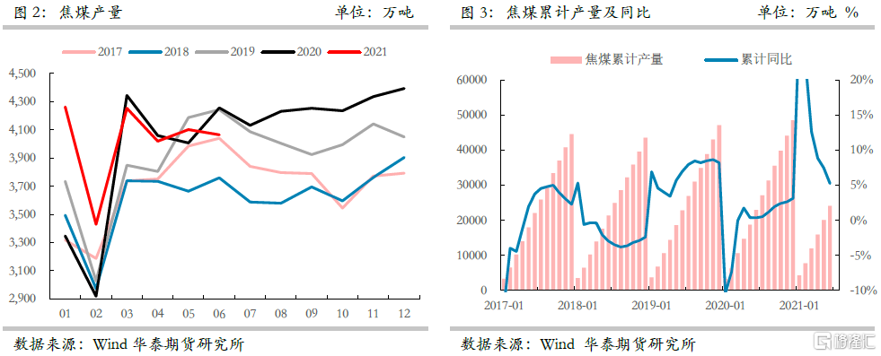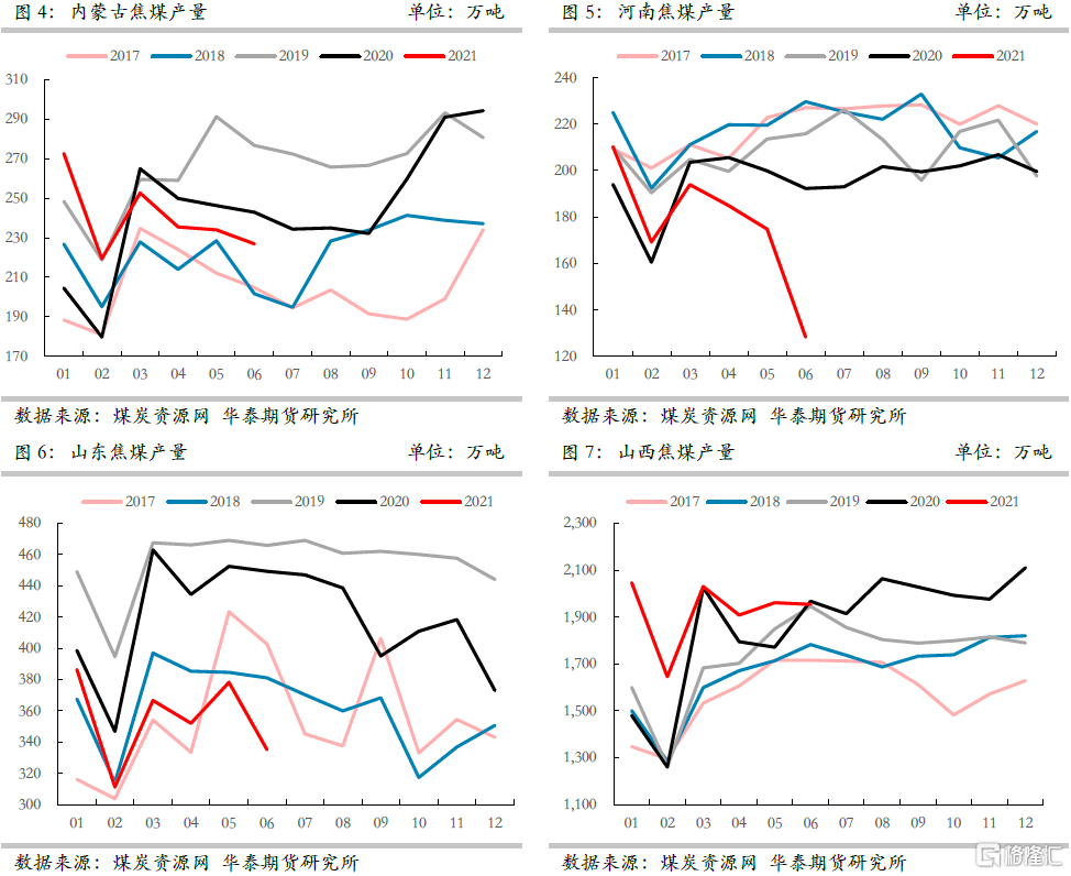 1、2021年煤礦生產受到安檢、環保、能源“雙控”等諸多限制,加之煤礦安全事故頻發,針對煤礦安全生產的相關檢查愈加頻繁,更加重了煤礦生產的阻力,自3月份保供結束之後,焦煤產量出現明顯下滑,3、4月份產量同比爲負,5月份有所回暖,6月份產量同環比增速再度轉負,二季度累計產量較去年同期減少136萬噸。