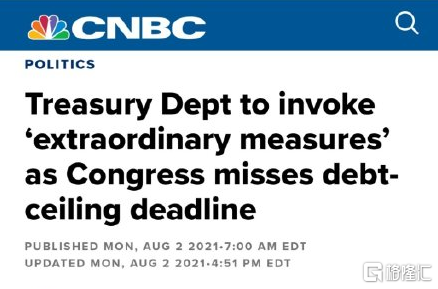 2021年8月1日開始,債務上限會重新生效,也就是白宮不能隨便借錢了。