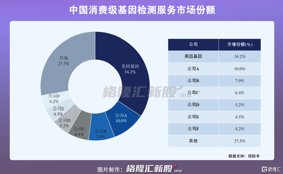 不過從競爭格局來看,美因基因2020年在中國市場份額位居第一,佔比爲34.2%,而公司最有力的競爭對手市場份額約爲10%。按2020年服務數目來算,美因基因進行2.7百萬次檢測,佔市場總數65.8%,是最有力的競爭對手檢測次數的10倍。