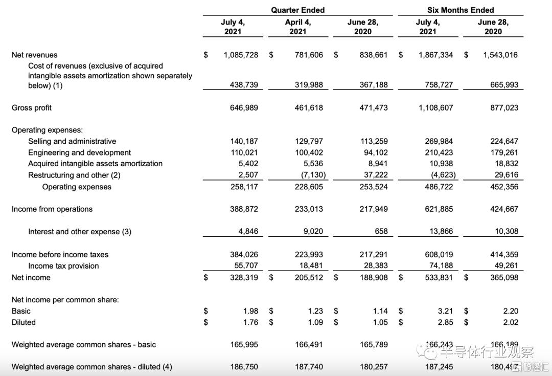 KLA-Tencor 2021年上半年的財報一覽(圖源:KLA-Tencor)