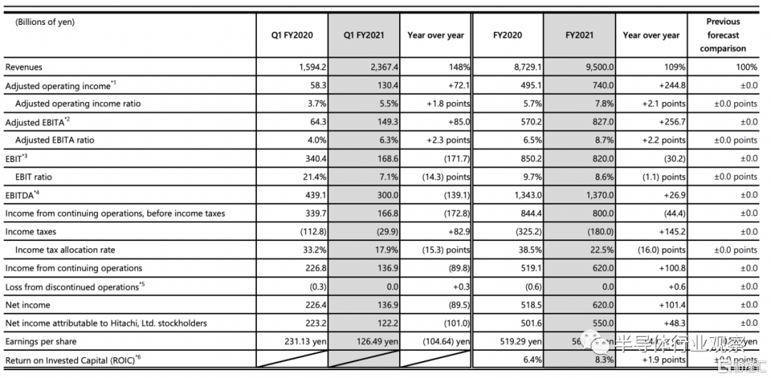 日立高新2021財年第一季度的財報情況(圖源:日立高新)