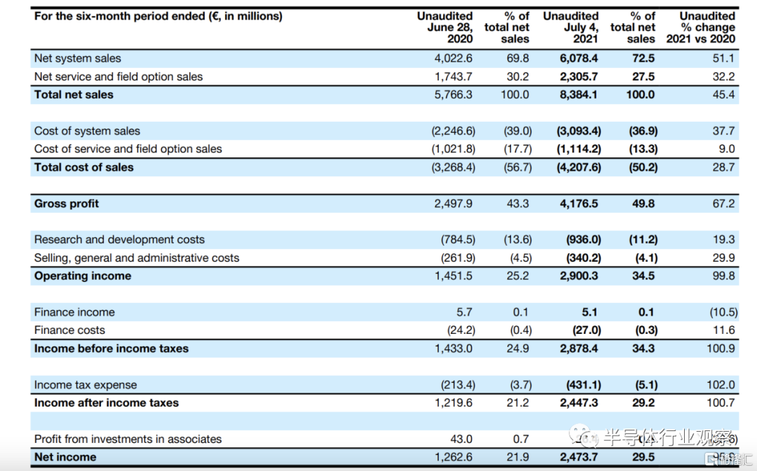 圖(a):ASML 2021年上半年的運營業績(圖源:ASML財報)