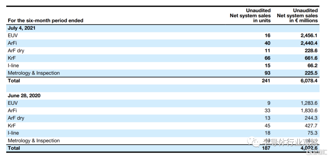 圖(b):ASML 2021年上半年各項設備的淨銷售額(圖源:ASML財報)