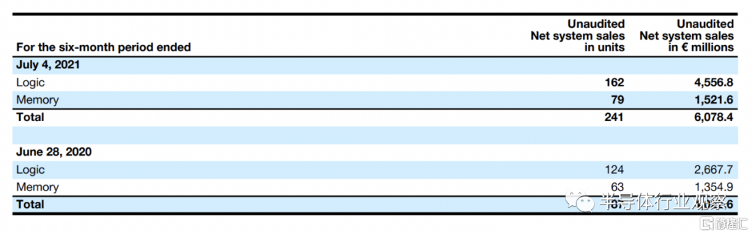 圖(c):ASML 2021年上半年的最終用途的系統銷售淨額(圖源:ASML財報)