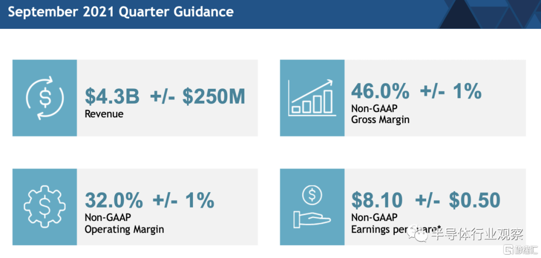 泰瑞達預計2021年第三季度的營收預期為8.8億至9.6億美元,攤薄每股GAAP淨收入為1.17至1.41美元,攤薄每股非GAAP淨收入為1.29至1.55美元。