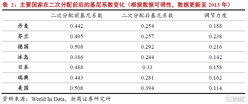 海外貧富差距較小國家主要依賴二次分配製度調節,產業政策不發揮核心作用