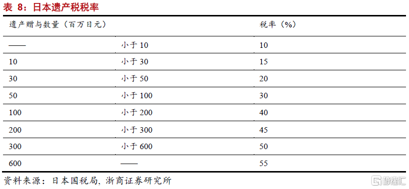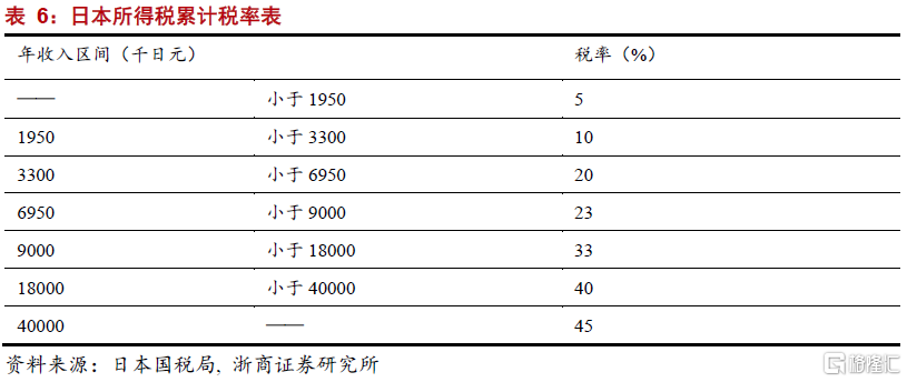 稅收領域,日本的稅收對財富再分配發揮極大作用。一是日本個人所得稅率分佈較爲陡峭,共分爲七個檔次,其中年收入4000萬日元以上的所得稅率高達45%,收入最低分檔的稅率僅5%。二是日本的公司稅和資本利得稅也相對較高,資本利得稅率爲15%-30%,公司稅率同樣採取累進稅制,分爲25.84%、27.75%、33.58%三擋。三是日本遺產稅率較高,最高可達55%,最大限度地拉近了社會貧富差距。