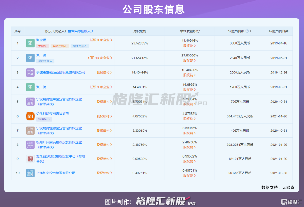 股權結構方面,天眼查顯示,目前創始人張寶恆是公司最大股東及實際控制人,控制公司29.5%的股份;另小米持股4.8%,北京合眾創投持股0.99%。