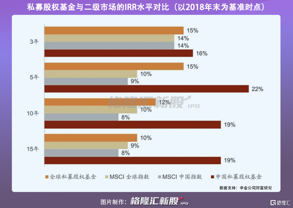 同樣是權益資產,私募股權基金的長期回報相較二級市場股票表現出明顯的超額收益,並且有着更低的波動率,給投資者帶來較好的投資體驗。