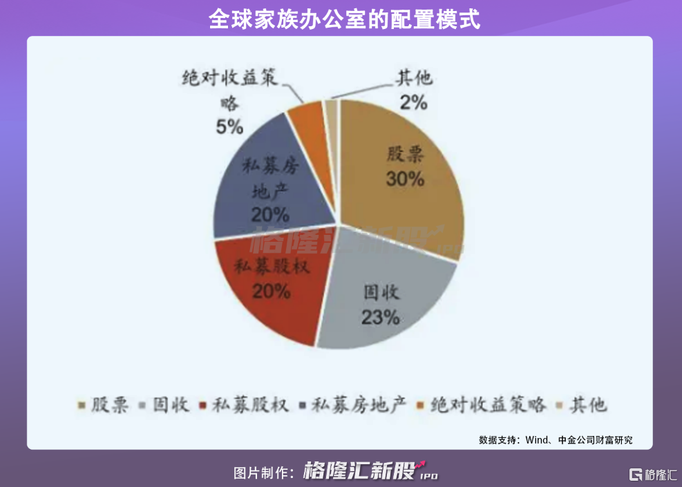因而,成熟的高淨值財富人羣越來越看重私募股權資產的配置價值。家族辦公室通常把大部分倉位放在長期高回報的權益資產上,其中私募股權和私募房地產倉位高達40%,超過二級市場股票。