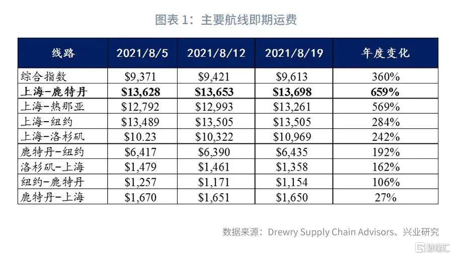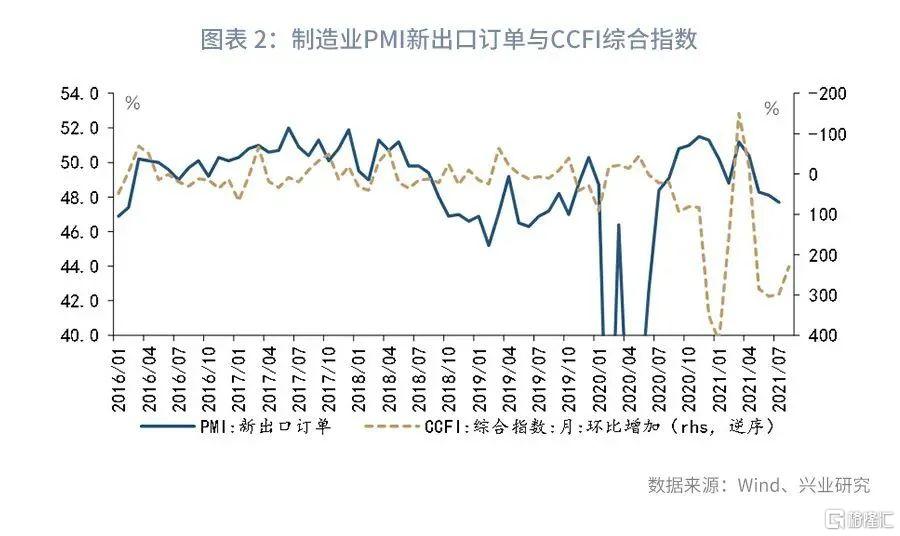 疫情爆發以來,供應鏈中斷疊加全球需求不均衡分佈,全球海運運費普遍上漲,由中國出發的航線漲幅位居前列。以上海至鹿特丹航線為例,截至2021年8月19日,該航線運價高達13698美元,為去年同期的6.6倍,參見圖表1。運費上漲帶來出口企業利潤空間收窄,企業接單意願下行進而導致新出口訂單持續下行,參見圖表2。那麼,出口企業運輸成本有多重?