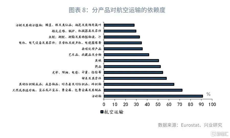 相對而言,高度依賴於航空運輸的產品出口受運輸成本上升的擾動較小。具體而言: