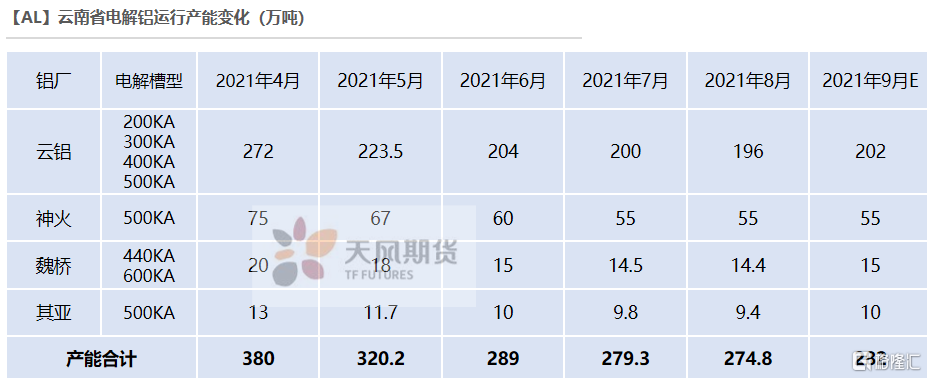 年底再度進入枯水期,水電存在緊缺可能,雲南電解鋁廠得以喘息的時間有限,料難以大規模復產。