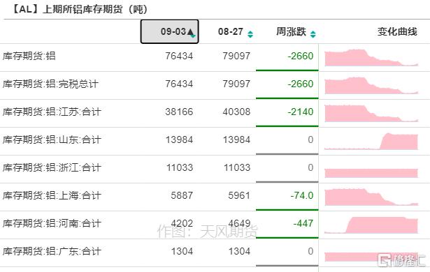 9月6日,電解鋁社會庫存下降0.5萬噸至74.4萬噸,無錫及鞏義地區貢獻主要降幅,到貨量穩定同時出庫表現尚可;南海地區庫存表現小幅積累,主因週末有西北地區鋁錠到貨。而鋁錠周度出庫量尚可,爲11.84萬噸,環比下降0.63萬噸。上期所鋁倉單降至7.6萬噸。