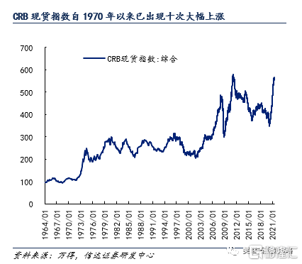 當前,不管是成長性週期股,還是傳統的週期股,它們的產能的情況都是比較緊張的。這個產能上的緊張,一方面源於宏觀調控導致產能釋放緩慢。即使產能收緊已經導致工業品價格大幅上漲,即使發改委強調部分行業要提高生產,“碳中和”背景下,很多行業的產能建設進度依然是不夠的。另一方面源於週期性的供需缺口難以在短期彌補。1970年至今,大宗商品共出現過9次大幅上漲,只有1次低於兩年,有6次達到兩年半,有2次達到三年。