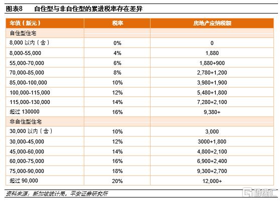(3)新加坡的房地產税+轉售轉租限制鼓勵自住持房,抑制房產交易。新加坡採用差異化的累進税率,對本國公民、首套住房均實施減免優惠,對交易環節收取相對高的税收。