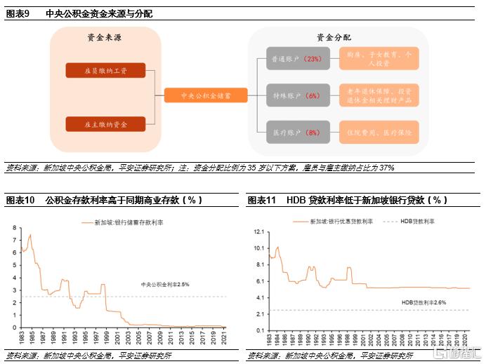 (1)高存低貸維持中央公積金制度可持續,公積金支持居民購房租房支出,結餘通過政府債支持HDB