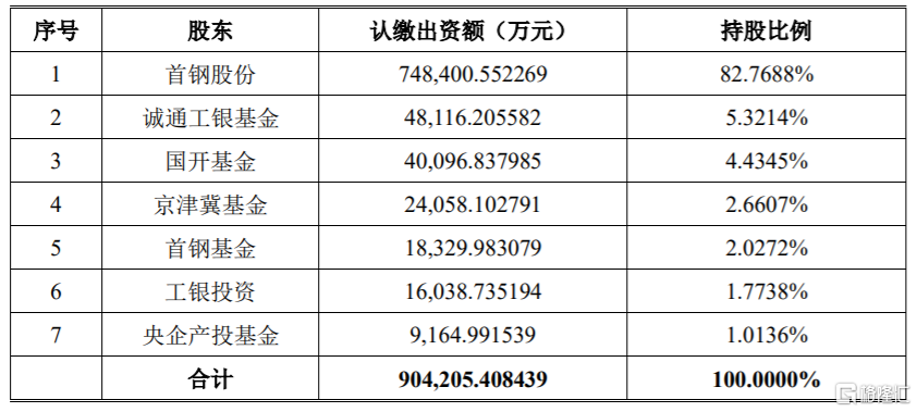 智新公司本次擬新增註冊資本人民幣15.58億元,增資後智新公司註冊資本由人民幣74.84億元增加至人民幣90.42億元。本次增資完成後,首鋼股份仍爲智新公司控股股東,智新公司股東及股權結構情況如下: