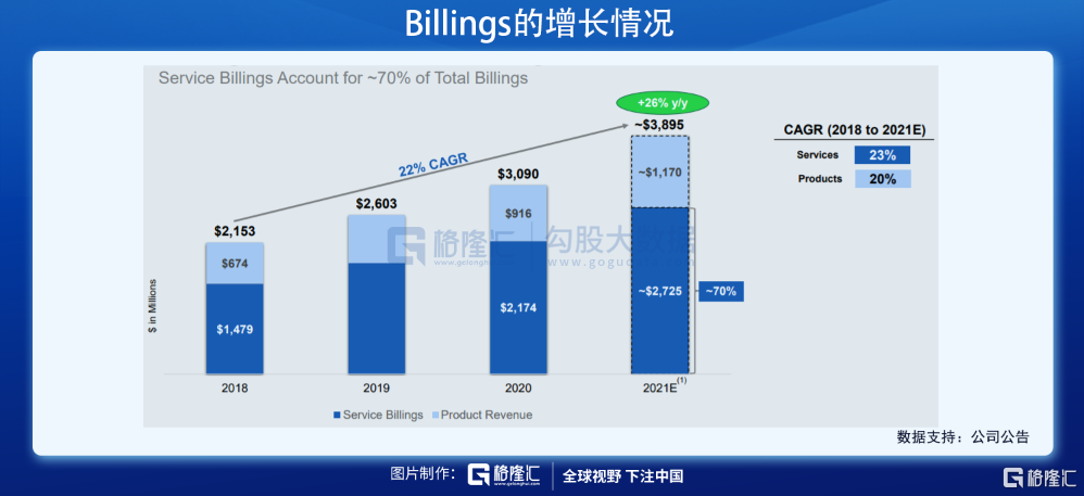 首先是訂單與營收。一般來說,只要SaaS企業產品訂閱業務在擴張,無論業務擴張是靠新客戶還是老客戶,Billings一定是增加的。Billings的增長率,綜合考慮當期已確認收入和增加未來潛在收入的Billings增長率,相較於單純看營收,能夠更全面地衡量業務的成長性。