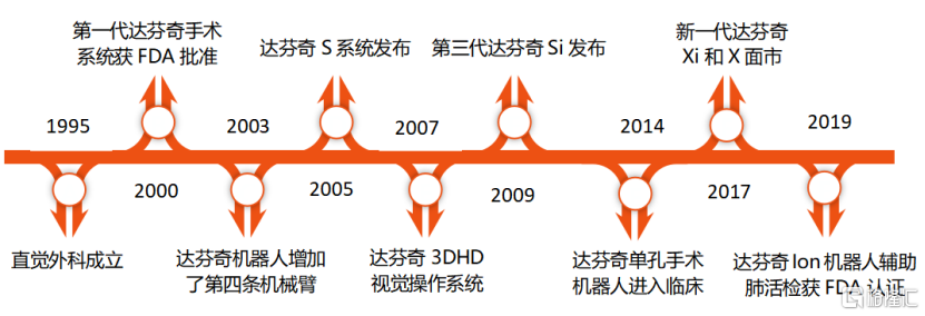 從堃博醫療的現有股東來看,筆者注意到了A輪融資時1500萬美元認購的直覺外科。說到直覺外科(納斯達克:ISRG)這家公司,可能很多人對其比較陌生。但是直覺外科旗下的達芬奇,在全球醫療機器人領域赫赫有名、無人不曉。