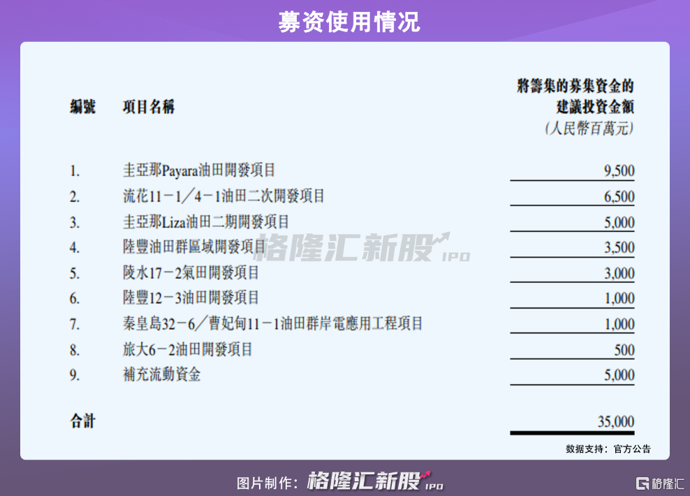 本次中海油擬募集資金不超過350億元,擬用於包括圭亞那Payara油田、流花11-1/4-1油田、陵水17-2氣田等在內的國內外多個油、氣田開發項目。