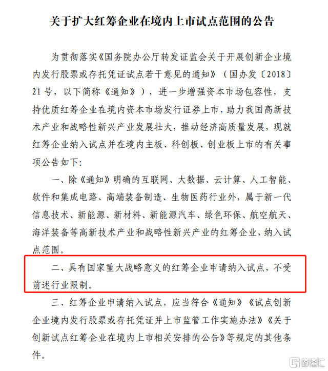 作爲又一巨無霸標的,本次啓動迴歸A股上市進程,中海油在一定程度上將存有更高的溢價空間。更重要的是,中國證監會近日出臺的《關於擴大紅籌企業在境內上市試點範圍的公告》,宣佈擴大2018年試點範圍,允許更多紅籌企業A股上市,其中,具有國家重大戰略意義的紅籌企業申請納入試點,不受下述行業限制,爲中海油這一紅籌股回A提供了有效的政策支持。