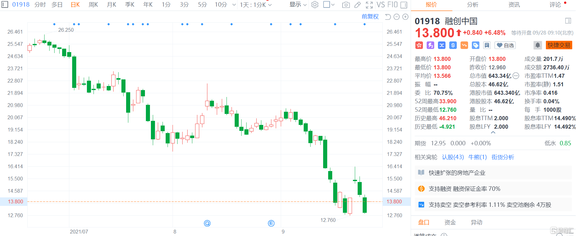 港股異動 | 融創中國(1918.HK)高開6.48% 澄清從未向政府提交“求助”報告