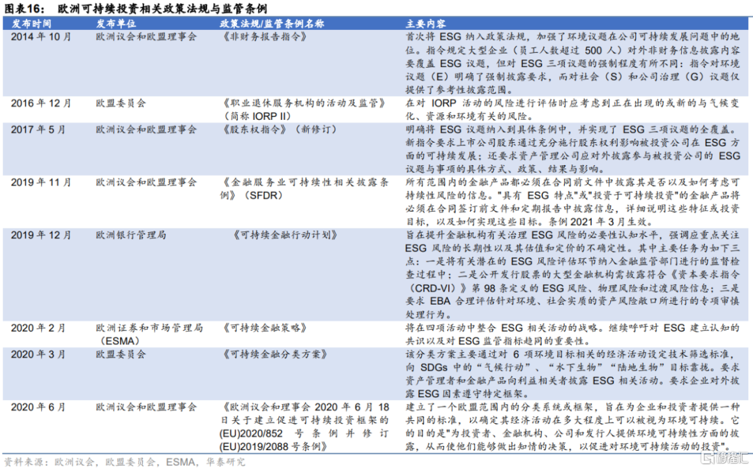 歐洲:大部分圍繞ESG展開,2014年首次系統地將ESG列入法律文件