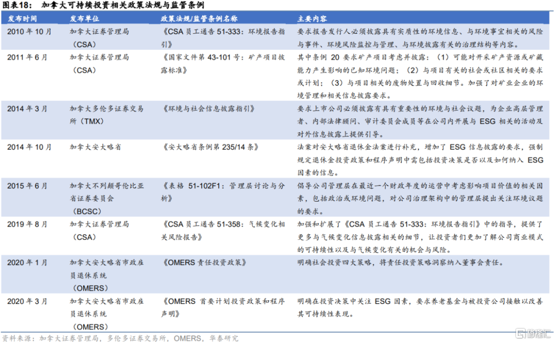 近十年來,加拿大不斷研究出台新政策和法規,完善原有法律法規,逐步規範和細化市場各參與方對ESG要素的考量及信息披露的要求,為ESG投資的發展奠定製度基礎。在政策法規推動下,一些大型資產所有者積極進行ESG投資實踐探索,將 ESG理念融入組織的價值觀;民間組織和有關機構、論壇等也通過調研、發佈報吿和提供相關諮詢等方式幫助市場各主體積極開展投資實踐,協助政府部門完善ESG相關政策法規體系的構建。可以説,加拿大包括ESG投資在內的責任投資市場的蓬勃發展離不開政策法制的指引,也得益於市場各方的積極參與和協力推進。