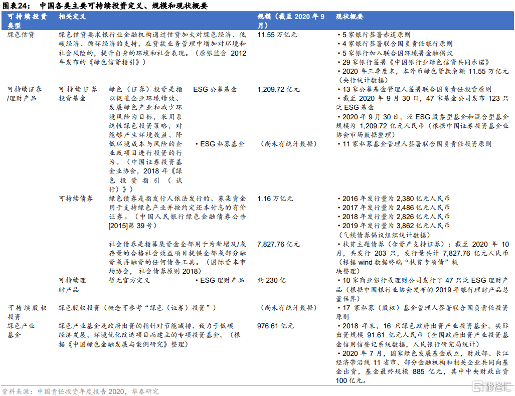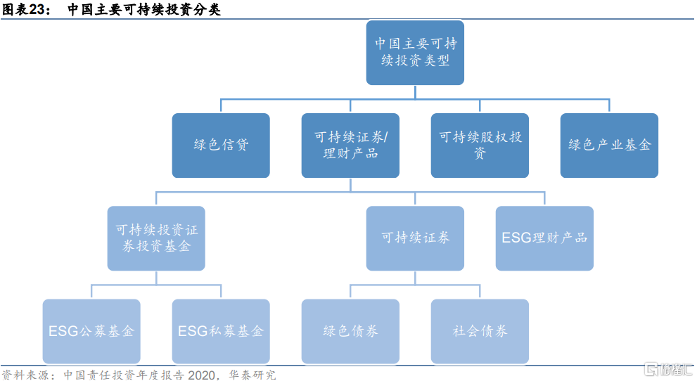 中國的可持續投資早期主要體現在銀行信貸業務上,自2020年中國描繪2030年前實現碳達峯和2060年實現碳中和的宏偉藍圖之後,中國資本市場可持續投資發展速度有望進一步提升,新的可持續投資產品不斷湧現,ESG理念逐步落實到實際投資層面。