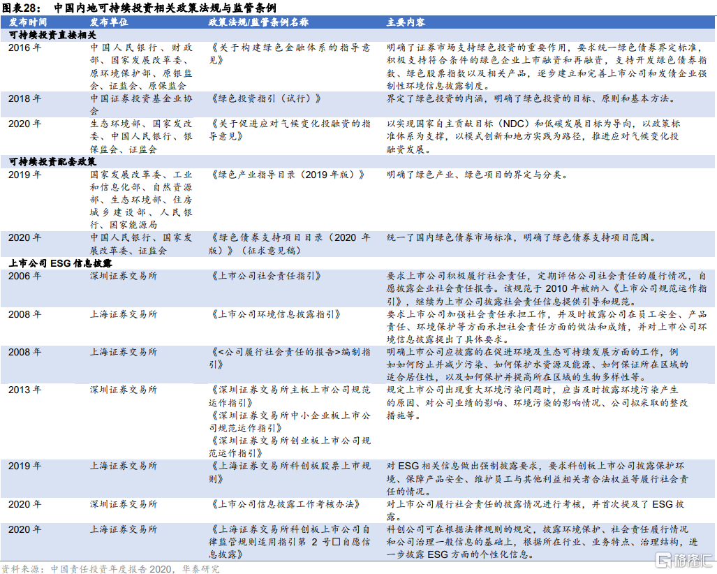 國內與可持續投資直接相關政策法規與監管條例2016年以來陸續出台