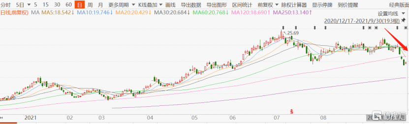 仔細看近期的股價就會發現,其股價在7月中旬的時候就已經有下跌趨勢,統計7月高點到現在,回撤超過30%。