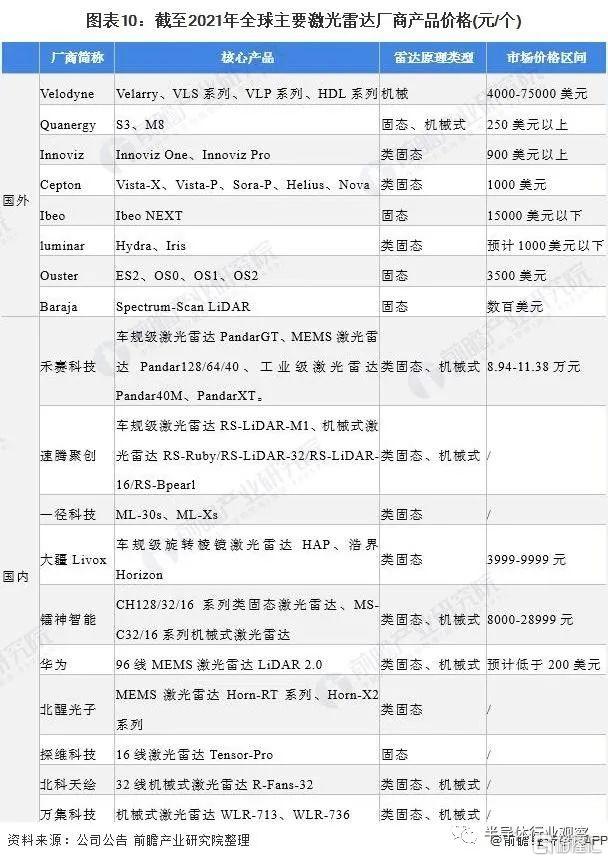 近年來,隨着激光雷達從機械式向固態式發展的趨勢,以及中國相關產業鏈的成熟與完善,特別是中游激光雷達已經有不少國產廠商如禾賽科技、大疆、華為、速騰聚創、鐳神智能等。激光雷達成本實現了快速的降低。其中OPA式的固態激光雷達在量產後有希望降到200美元以下。