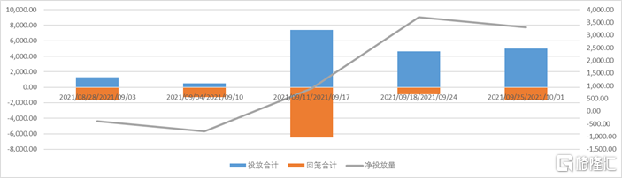 上週央行累計開展5000億逆回購投放,無MLF投放,本週累計1700億逆回購到期,無MLF到期,合計淨投放3300億。