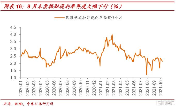 預計9月新增人民幣貸款1.9萬億左右,較前值季節性回升,和去年同期持平。9月份多家銀行繼續上調按揭貸款利率,商品房銷量繼續回落,疊加消費反彈力度有限,預計居民消費貸款新增量進一步走弱。工業生產景氣度回落,基建、製造業投資回升乏力背景下,企業中長期貸款增量可能受到一定負面影響。值得關注的是,9月底票據貼現利率再次出現較大幅度下行,或表明實體融資需求不強,票據衝量現象較普遍,信貸結構堪憂。儘管央行9月份新增3000億元支小再貸款額度,但總體規模有限,而且分4個月發放,對於信貸投放拉動作用較弱。