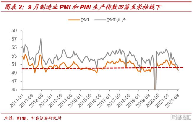 工業:生產承壓,旺季難旺。9月工業生產下行壓力明顯加大,一方面源於鋼鐵限產、汽車缺芯、PPI-CPI剪刀差擠壓下遊企業利潤等老問題,另一方面源於多地採取“限產限電”措施帶來的新問題。受“雙限”政策衝擊影響,預計9月份工業增加值環比增速明顯低於季節性(2011年來均值8.0%),同比增速降至2.6%。
