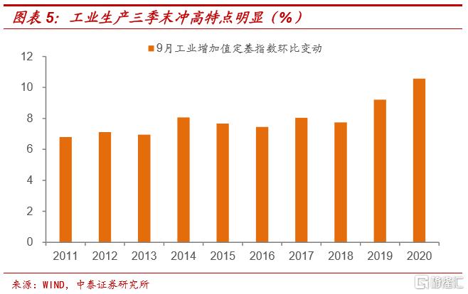 社零:疫情拖累減弱,消費小幅回暖。從高頻數據看,9月旅客發送量、出遊人數明顯回升,而汽車、地產銷量延續低迷態勢。綜合考慮中秋假期對於消費的拉動作用(去年假期在10月),預計9月份消費景氣度有所回升,但增速反彈高度有限(3.5%左右)。