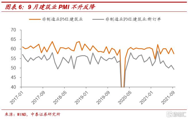 高基數下9月固投累計增速預計降至8.0%。9月建築業PMI指數較前值下降3個百分點,新訂單指數回落至榮枯線下,高頻數據中的鋼材成交量、庫存變化等指標基本符合季節性,表明項目施工需求並未明顯上升。值得關注的是,水泥、鋼材等主要建築材料價格維持高位主要反映供給收縮而非需求擴張的邏輯。考慮到此前房企融資持續收緊、建築材料價格持續攀升,可能會對新項目開工積極性產生較大沖擊。比如草根調研顯示,由於項目方資金壓力較大,加之原材料價格高漲,部分新開工項目被迫延後施工,導致水泥需求受挫。[1]