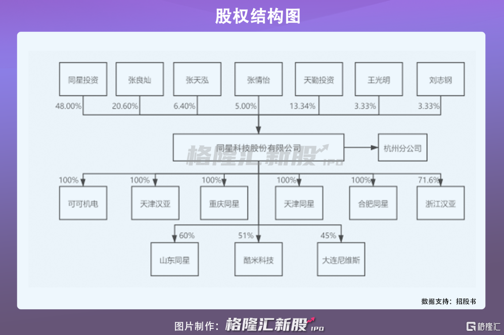 同星科技的主營業務爲製冷設備相關產品的研發、生產和銷售,主要產品包括換熱器、製冷系統管組件、汽車空調管路和製冷單元模塊等。旗下產品應用領域涵蓋輕商製冷設備、家用製冷設備、空調、乾衣機等領域。目前公司已有翅片式換熱器產品逾 2000 種,具備年產翅片式換熱器 600萬個的生產能力。本次公開發行股票前,公司實際控制人張良燦、張天泓、張情怡直接和間接控制公司93.34%的股權。
