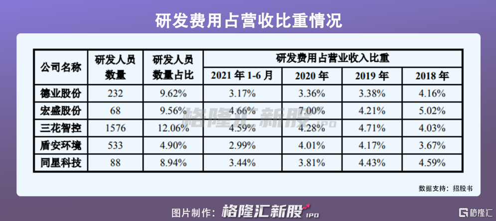 在這一基礎上,同星科技需要通過創新來加強產品競爭力,目前公司研發人員數量與其他同業可比上市公司相比相對偏少,主要是因爲公司規模相對較小,同行業可比上市公司大多向行業上下遊產業延展所致。同時,公司研發費用分別爲1687.71萬元、1831.66萬元、1913.43萬元、1353.29萬元,佔營業收入的比重分別爲4.59%、4.43%、3.81%、 3.44%,亟待進一步提升。