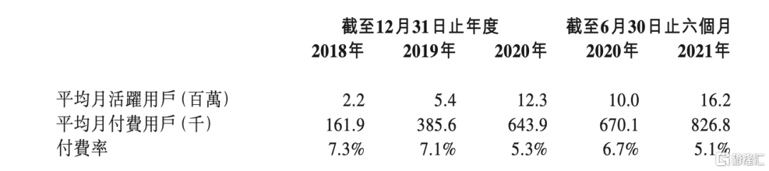 趣丸網絡表示,公司整體收入增長主要是由增值服務增長以及在2020年下半年推出的音頻娛樂服務所推動,具體反映在月活用戶的增長以及月付費用戶的增長。招股書顯示,公司平均月付費用戶數目由2018年的16.19萬人增加138.2%至2019年的38.56人,並進一步增加67%至2020年的64.39人。2021年6月30日,平均月付費用戶達到82.68萬人,同比增長23.4%。