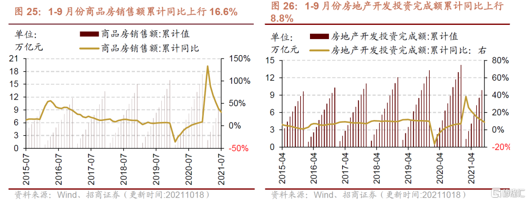 1-9月份商品房銷售額累計值爲13.48萬億元,累計同比增長16.6%,增幅較前值收窄6.2個百分點;1-9月份商品房銷售面積累計值爲13.03億平方米,累計同比增長11.30%,增幅較前值收窄4.6個百分點;1-9月份房地產開發投資完成額累計值爲11.26萬億元,累計同比增長8.8%,增幅較前值收窄2.1個百分點。